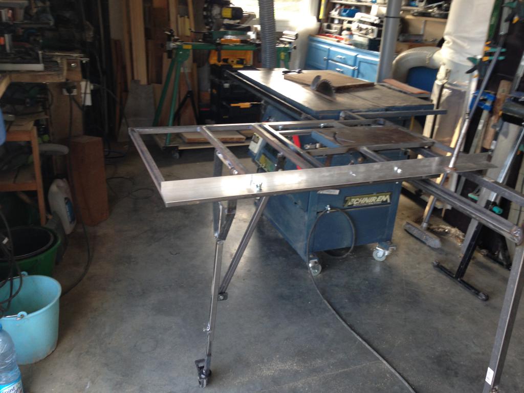 après 2 jours de découpe et de soudure j'ai réalisé l'agrandissement du chariot selon les plans de granphil17 avec en plus une rallonge du rail de guidage de 1 m.